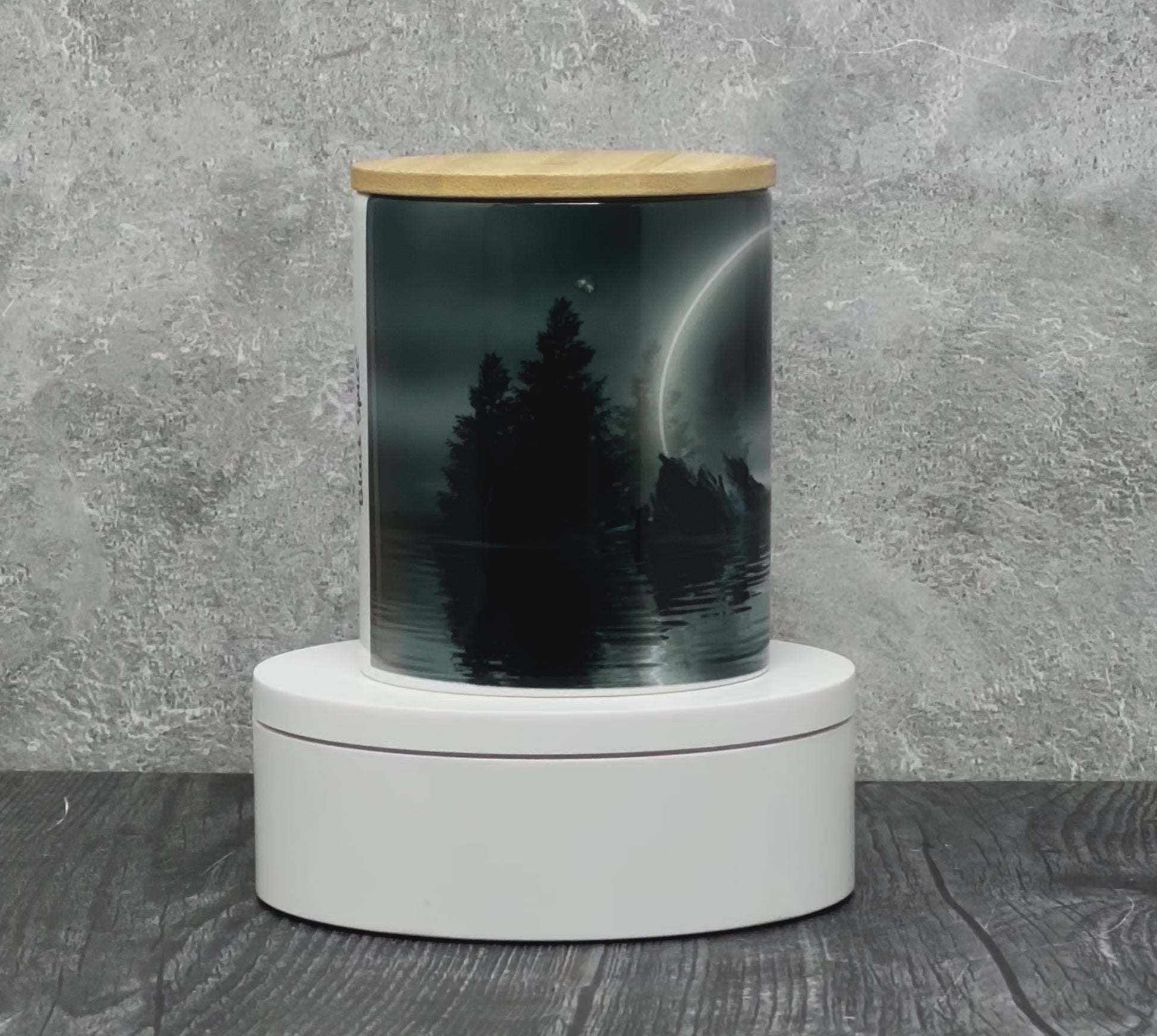 This is more than a candle - it's a work of art! Burn time 60+ hours. Jar measures 4" tall and 3.25" in diameter. Made with our new coconut wax blend. This ceramic candle can be washed and reused after the burn is complete!