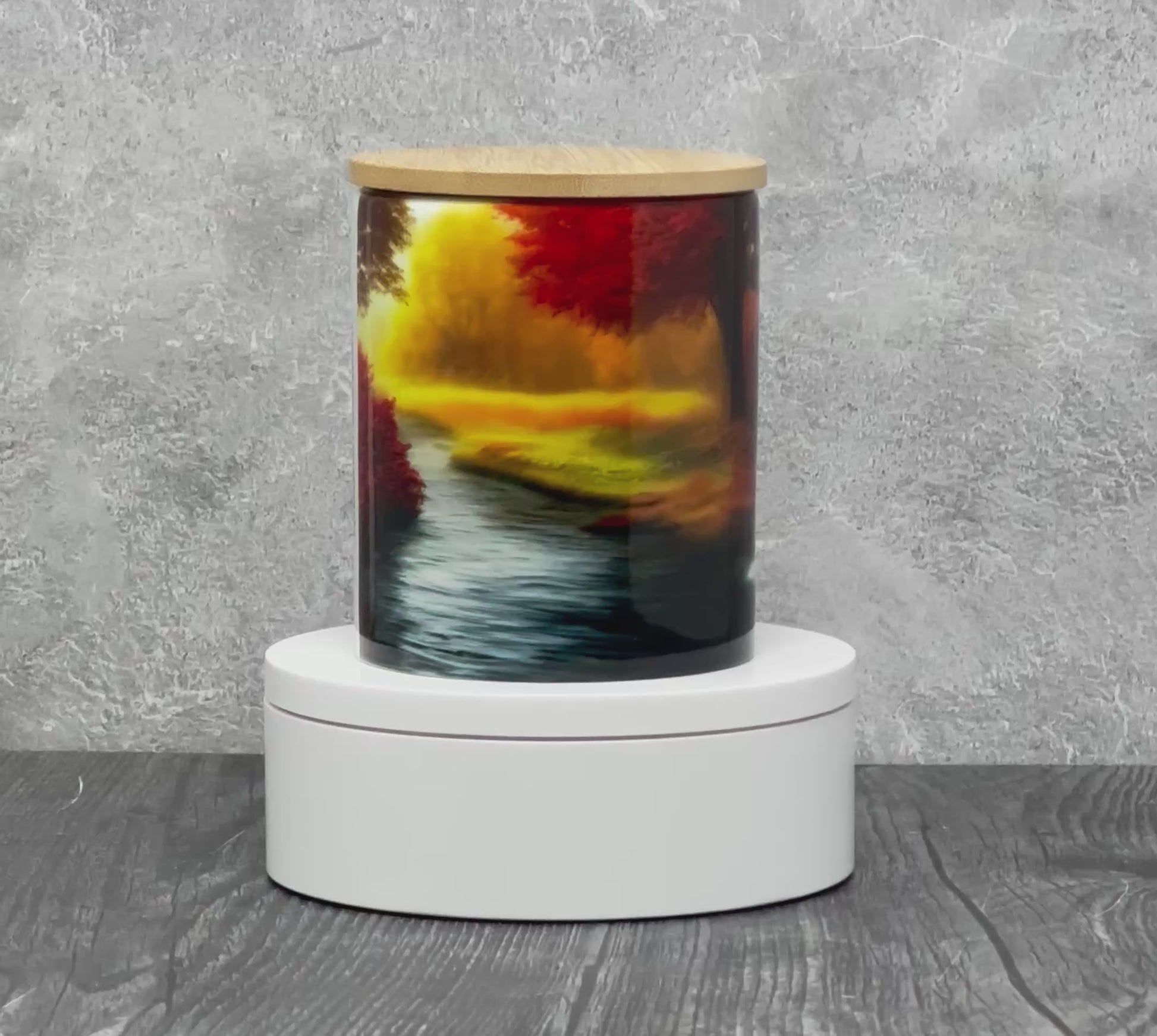 This is more than a candle - it's a work of art! Burn time 60+ hours. Jar measures 4" tall and 3.25" in diameter. Made with our new coconut wax blend. This ceramic candle can be washed and reused after the burn is complete!