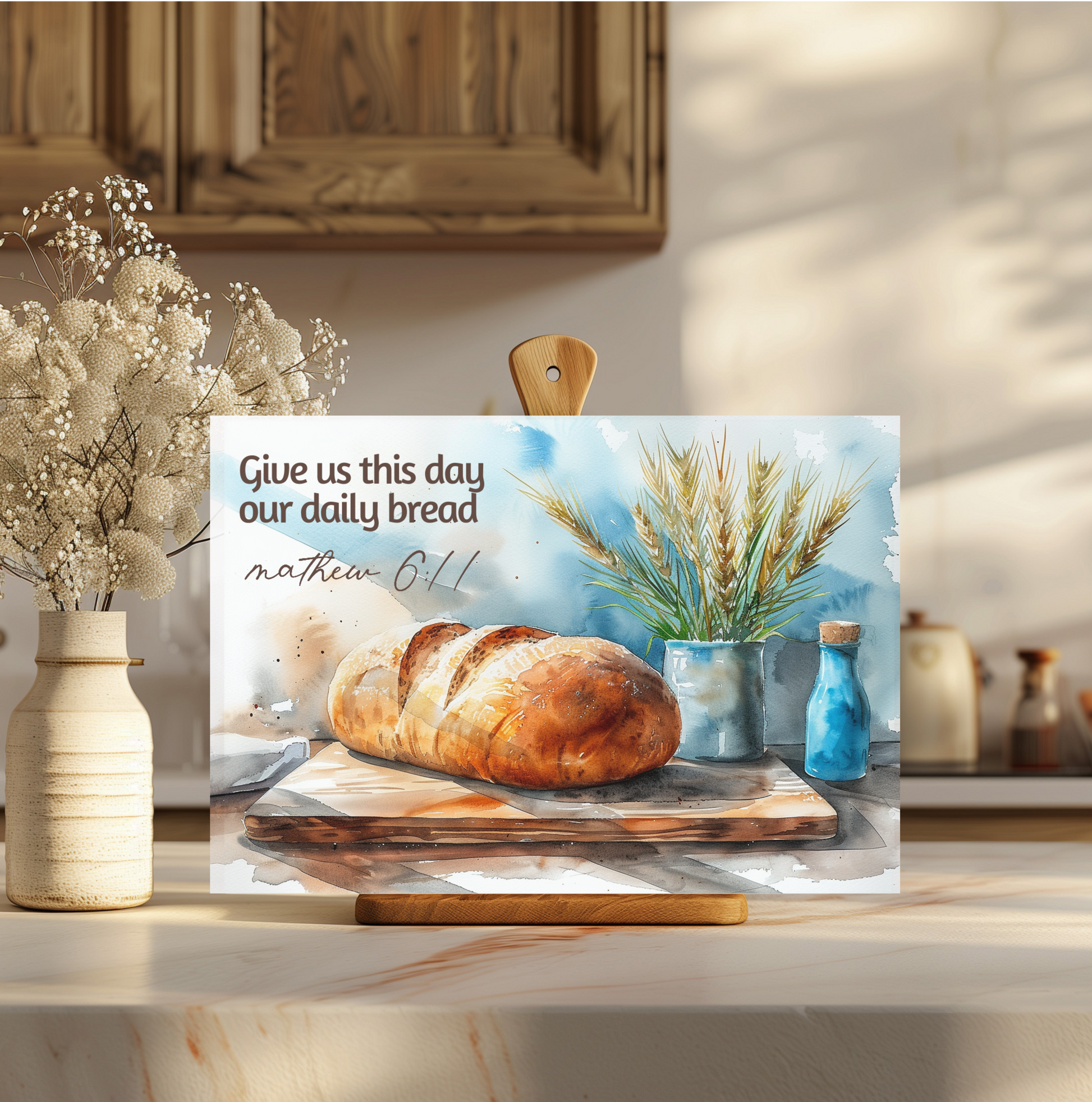 Comes with a black metal easel to display your cutting board! Approximately 11" x 8"