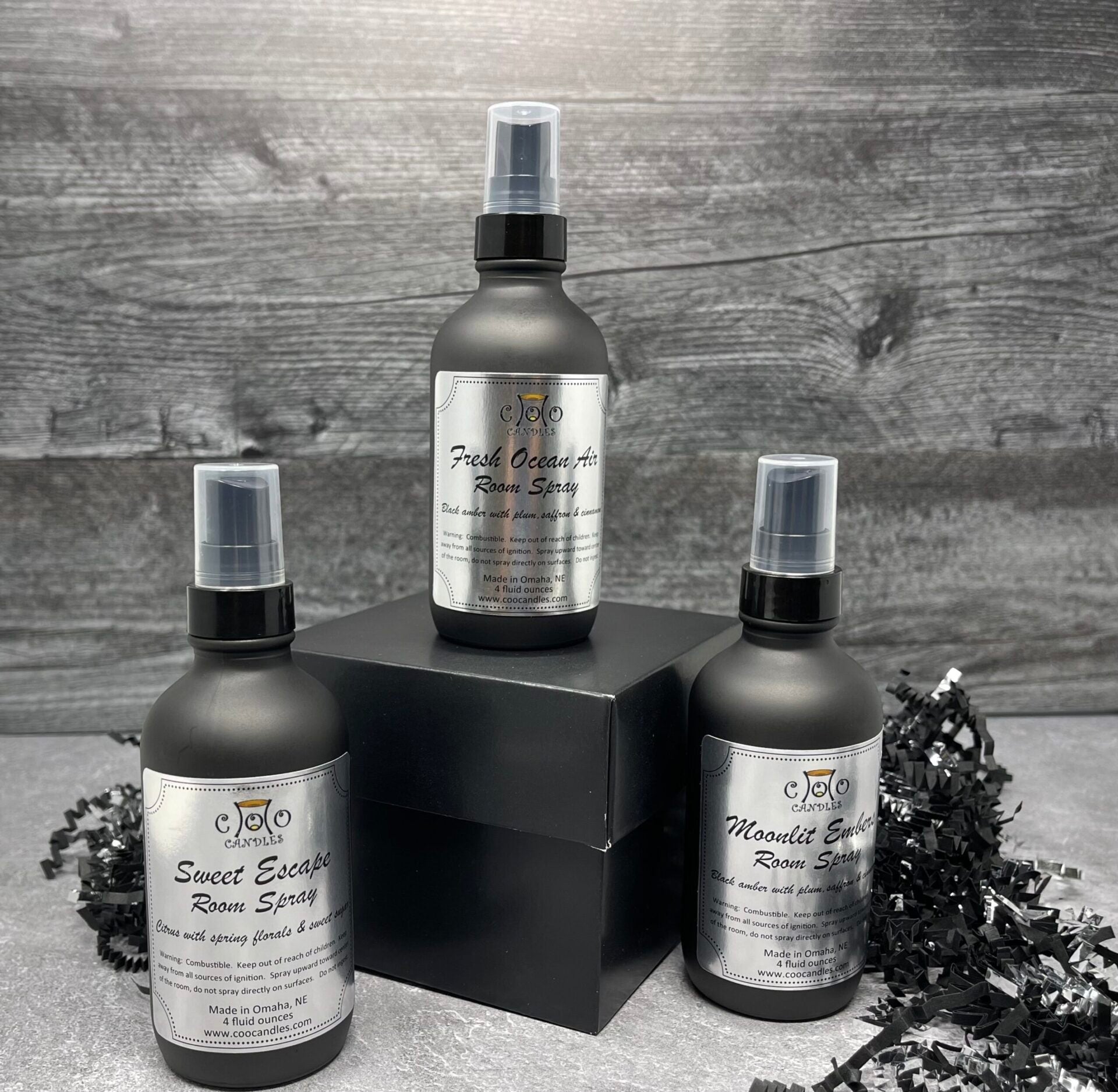 Our room sprays are an attractive way to get a quick blast of scent through your room! Choose from several great fragrances! See below for scent descriptions!