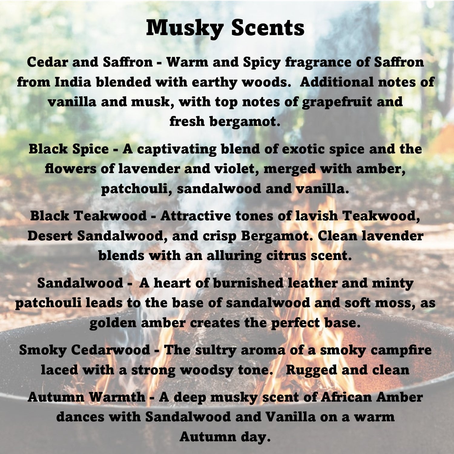6 Pack Soy Coo Scents in our "Musky" Theme. Set includes a 2.4 ounce, 6 cube bar in each of the following: Black Spice, Autumn Warmth, Sandalwood, Black Teakwood, Smoky Cedarwood, and Cedar and Saffron. Comes in a sturdy box for easy storage and gift wrapping!